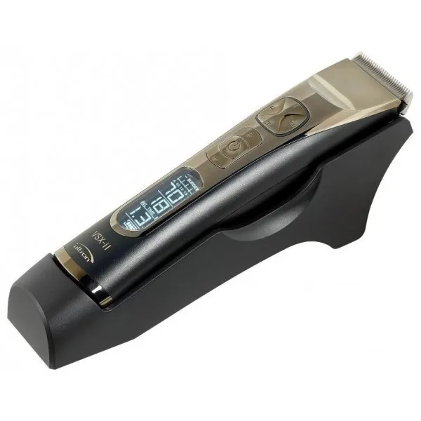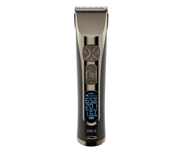 Profesionalni strižnik Ultron VSX-II ima motor z močjo 5000-7000 obratov na minuto, zaradi česar je primeren za striženje las in brade. Hitrost gibanja lahko priročno nastavite z gumboma + in – na ohišju gibanja. Titan-keramična glava stroja s širino 43 mm ima nastavljivo višino reza od 1 mm, 1,3 mm, 1,6 mm in 1,9 mm. Višino reza lahko ponovno nastavite z gumbi I-IV na ohišju stroja. Višino reza lahko spreminjate tudi s pomočjo plastičnih podaljškov, v paketu so podaljški velikosti 3 mm, 6 mm, 9 mm, 12 mm, 15 mm, 18 mm, 21 mm in 25 mm. Na ohišju stroja je pregleden LED zaslon, na katerem najdemo podatke o izbrani hitrosti ali višini striženja, preostalem času do izpraznjene baterije, podatke o obremenitvi stroja, potrebi po naoljenju glave in potrebo po polnjenju stroja. Čas delovanja mehanizma je 235 minut, čas polnjenja pa 180 minut. Paket vsebuje stojalo za polnjenje, ščetko za čiščenje, olje in adapter za polnjenje.